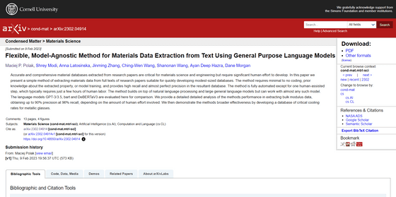 [2302.04914] Flexible, Model-Agnostic Method for Materials Data Extraction from Text Using General Purpose Language Models