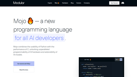 Apple의 프로그래밍 언어 "Swift"를 낳은 크리스 래트너 씨가 CEO로 있는 소프트웨어 개발 스타트업 Modular가 새로운 프로그래밍 언어 "Mojo"를 2023년 5월 3일에 발표했습니다. Mojo는 지금까지의 프로그래밍 언어인 Python의 사용감과 C언어 수준의 성능을 겸비한 언어라고 합니다.