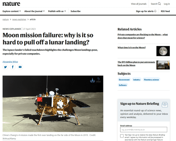 세계 최초의 시도로 각계에서 주목받았던 이 미션에 대해, Nature지의 사이언스 작가인 알렉산드라 비체가 「왜 월면 착륙은 어려운가」라는 점에 초점을 맞추어 해설하고 있습니다.