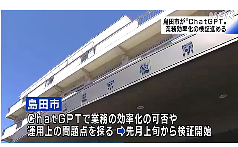 시즈오카현 시마다시가 업무 효율화를 위해 ChatGPT 활용의 검증을 4월 초순부터 시작했습니다. 관련 내용을 2023년 5월 7일, NHK 시즈오카 방송국이 보도하고 있습니다.