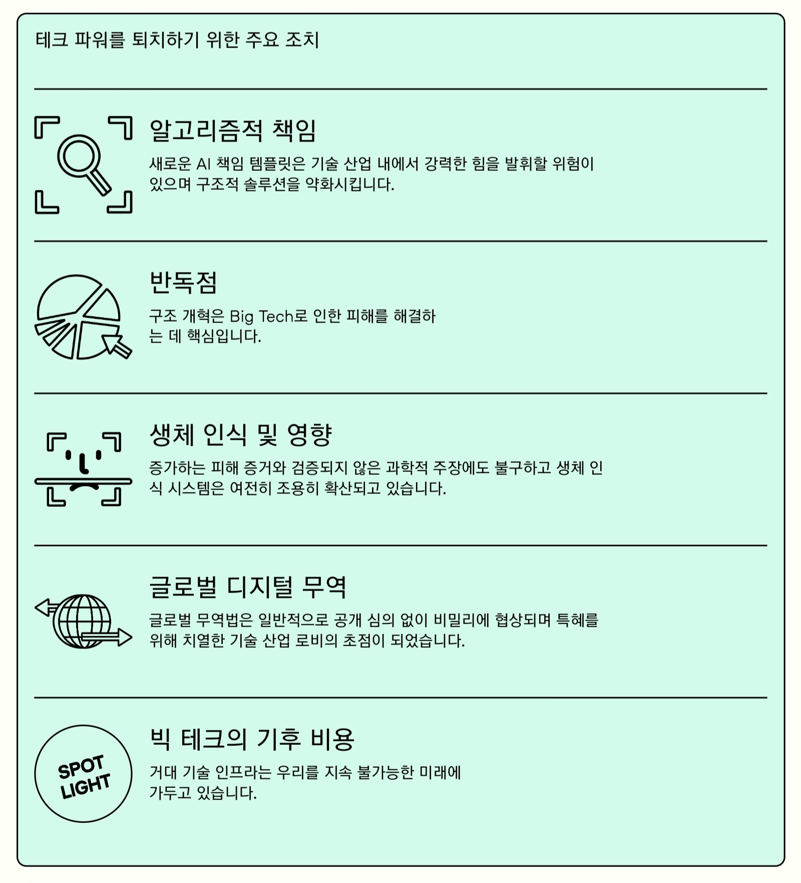 AI Now는 이 리포트에서 "더 늦기 전에 이 힘의 불균형을 다루어야 한다."라고 주장합니다. 현재의 AI 개발은 빅테크 없이는 성립되지 않기 때문입니다.