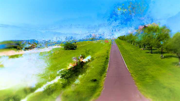그 밖에도, 단시간에 촬영한 정보량이 적은 영상 데이터로부터 NeRF 생성을 실시하는 것으로, 의도적으로 노이즈를 늘려 추상화 같은 인상을 낳는 기법을 도입했다고 합니다.
