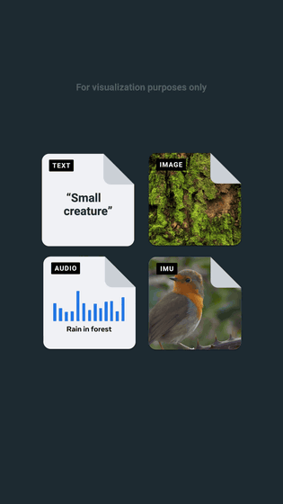ImageBind는, 이미지나 동영상을 다리로 삼아 텍스트 외에 「음성」, 「3D 심도」, 「열」, 「움직임」이라는 4 종류의 자기 지도 학습용 데이터를 통합합니다. Meta에 의하면, 열이나 3D심도는 이미지와 강한 연관성이 있기 때문에, 데이터 세트의 정렬이 용이하다고 합니다. 다만, IMU로 측정한 움직임이나 음성에 대해서는 상관성이 약하기 때문에, 아기의 울음소리 같이 시각적인 콘텍스트에 수반되는 데이터가 된다고 합니다.