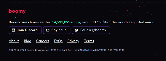 Boomy에 의하면, 유저가 생성한 악곡은 1,459만 1,095곡이며, 세계에서 녹음된 악곡의 약 13.95%에 상당한다고 합니다.