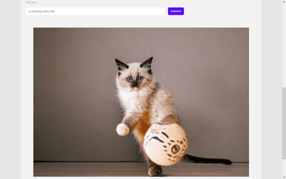 영어로, '공으로 놀고 있는 고양이'를 입력해 봤습니다. 공이 나오긴 했지만 고양이의 발과 융합되어 버렸습니다. ㅋㅋ