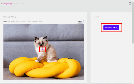 그런 다음 바꾸고 싶은 객체를 클릭하고 "GENERATE MASKS"를 클릭합니다.
