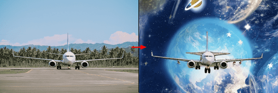 마지막은 「airplane flying in outer space」라는 프롬프트로 활주로상의 비행기를 우주공간으로 이동시켜 보았습니다. 다소 화려하여 촌스러운 느낌이지만 우주 공간을 날아가는 비행기가 올바르게 생성되었습니다.
