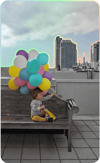 아이를 우선 중앙으로 옮깁니다. 사진에서 잘려나갔던 풍선도 온전히 그려졌습니다.