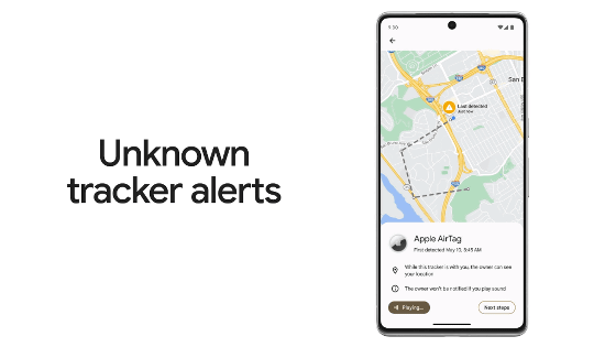 2023년 여름 업데이트를 통해 「디바이스 찾기」에는 자신이 아닌 블루투스 트래커의 의심스러운 추적을 감지하는 기능이 추가될 예정입니다. 「디바이스 찾기」를 탑재한 스마트폰이 '자신이 아닌 트래커가 함께 이동 중'이라고 판단할 경우, 추적당하는 사용자에게 경고를 보내 지도에 트래커를 표시하거나 소리를 울려 위치를 특정할 수 있다는 것.