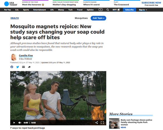 버지니아 공과 대학의 연구팀이 2023년 5월 10일에 과학 잡지 iScience에서 발표한 논문에 따르면, 인간이 몸을 씻는 데 사용하는 비누의 향기에 의해 모기를 유인하거나 멀리할 수 있다고 합니다.