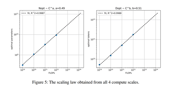 오른쪽 그래프의 세로축은 최적의 토큰수(=트레이닝에 이용한 데이터의 양)를 나타냅니다.