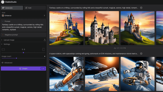 이미지 생성 AI 「Stable Diffusion」의 개발사인 Stability AI는 직관적인 조작으로 Stable Diffusion에 의한 이미지 생성을 실행할 수 있는 공식 웹 앱 「DreamStudio」를 제공하고 있습니다.