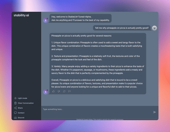 또한, StableStudio에서는 Stability AI제 채팅 AI 「StableVicuna」를 이용한 채팅 기능이 곧 추가될 예정입니다.