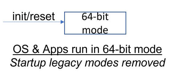 Intel에 따르면, OS나 애플리케이션의 64비트 대응이 진행되어 「64비트 아키텍처의 '잘 사용되지 않는 요소'를 삭제할 수 있는 것이 아닌가?」라고 검토할 수 있는 단계에 이르렀다고 합니다. 이 아이디어를 실현하기 위해 Intel은 32비트 지원을 완전히 제거한 새로운 아키텍처 개발을 고려하기 시작했습니다.