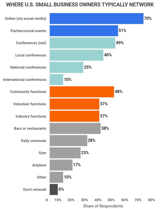 소규모 비즈니스 오너가 어떻게 인맥을 키우고 있는지 보여주는 그래프가 아래.