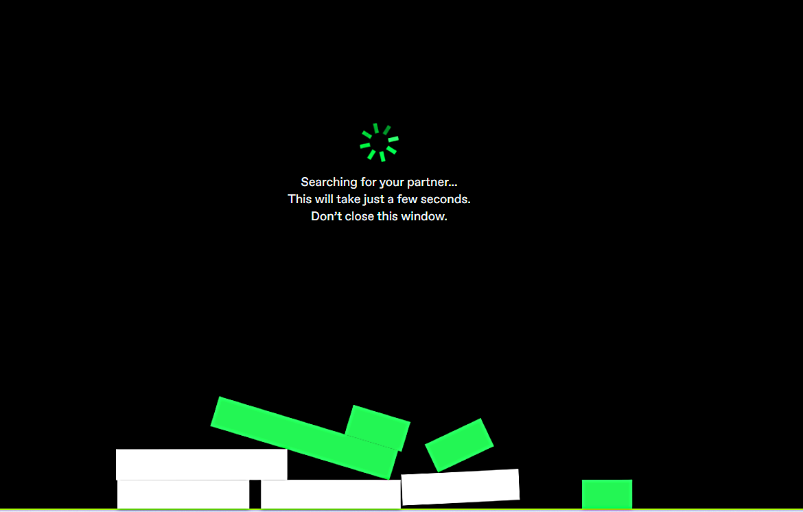 「Partner(대전 상대)를 찾고 있습니다」라는 메시지와 함께 블록이 떨어져 쌓이는 애니메이션이 표시됩니다.