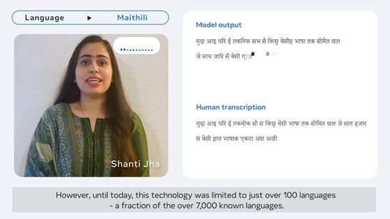 Meta가 공개하는 동영상에서는 MMS가 다양한 언어를 실시간으로 문자화하는 모습을 볼 수 있습니다.