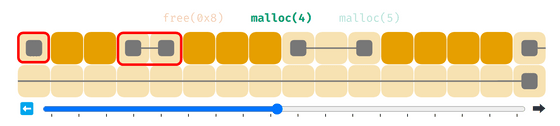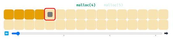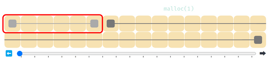 예를 들어 malloc(4)를 실행하면 앞의 4 바이트가 할당되었습니다.