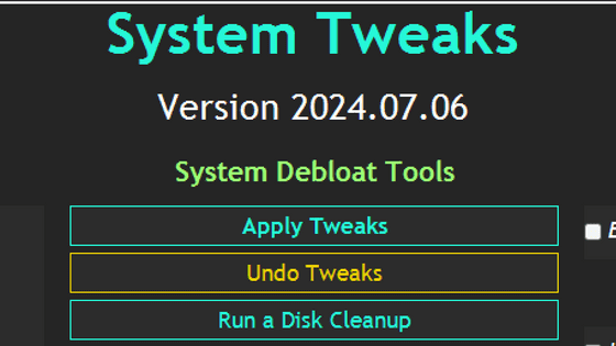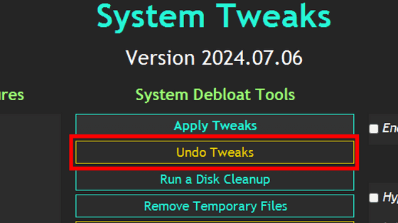 덧붙여 문제가 발생했을 경우는 「Undo Tweaks」를 클릭하는 것으로 변경한 내용을 바탕으로 되돌리는 것이 가능하다는 것.