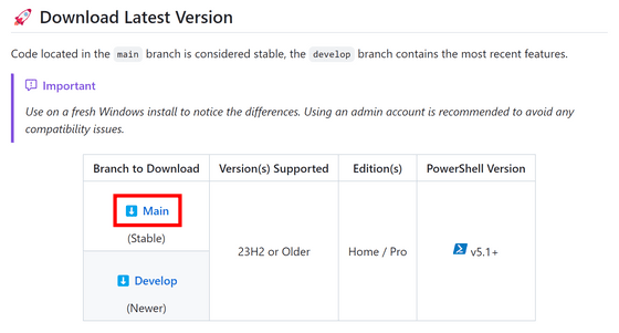 GitHub 페이지 로 이동 , "Download Latest Version" 항목에서 "Main"을 클릭하십시오.