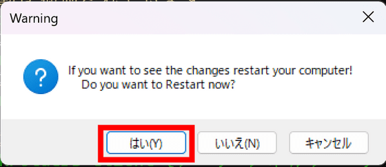 Win Debloat Tools를 닫으려고 하면 PC를 다시 시작해야 한다는 메시지가 나왔습니다. 예를 클릭하여 다시 시작합니다.