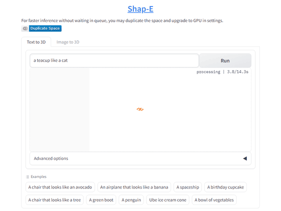 기계 학습 엔지니어 hysts 씨가 Shap-E를 체험할 수 있는 데모 사이트를 AI용 리포지토리 사이트 Hugging Face에 공개하고 있어, Shap-E가 어떤 AI인지를 브라우저에서 쉽게 체험해 볼 수 있습니다.